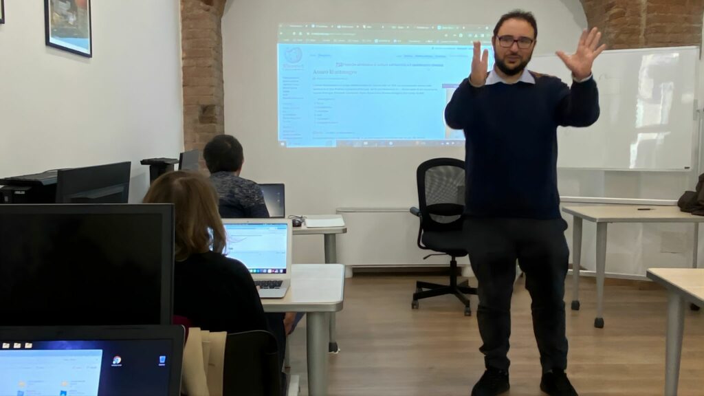 Ogni partecipante ha un computer a disposizione e può esercitarsi direttamente su ciò che viene spiegato. Chi lo desidera può portare il proprio portatile per imparare a lavorare sul sistema che utilizza a casa.