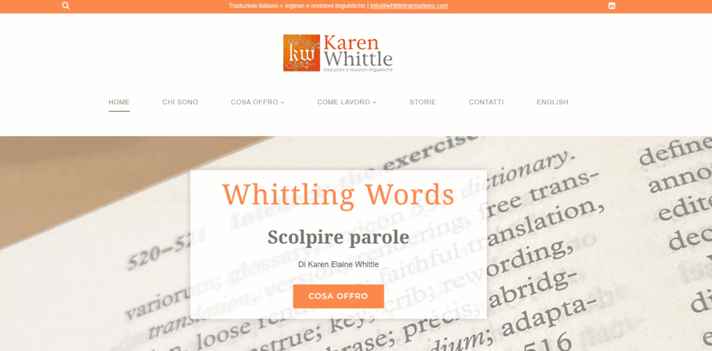 Abbiamo avuto il piacere di collaborare con Karen Whittle, una rinomata traduttrice in ambito accademico, culturale e artistico. Karen ci ha contattati con l’obiettivo di trasformare il suo vecchio sito in una nuova piattaforma professionale che mantenesse l’essenza del suo logo ed esprimesse la qualità delle sue traduzioni in campo artistico e letterario.