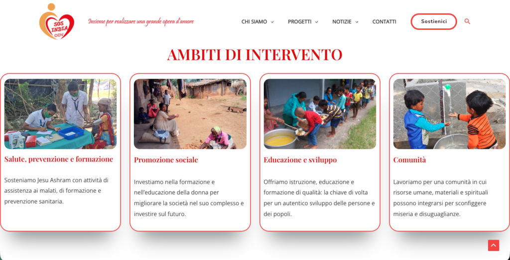 Con la partnership di Escamotages, SOS India ha dato vita a un sito web che non solo racconta la loro storia, ma invita anche gli altri a unirsi alla loro causa. Attraverso un design coinvolgente e contenuti ispiratori, il sito web di SOS India trasmette il messaggio di speranza e cambiamento positivo, incoraggiando gli utenti a contribuire e a fare la differenza nella vita dei bambini bisognosi.